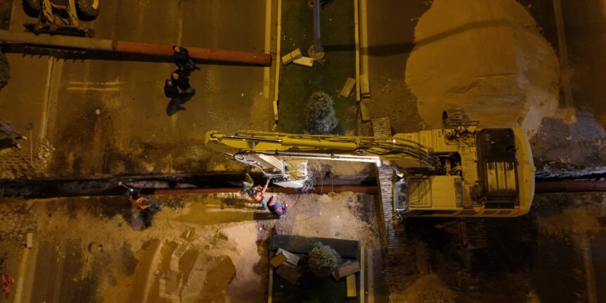 Artuklu ilçesinin içme suyu altyapısını modernize etmek ve su temin kapasitesini artırarak kesintisiz içme suyu sağlamak amacıyla yürütülen Mardin İçme Suyu Projesi çalışmaları, Mardin’in en işlek yollarından biri olan Mardin–Diyarbakır karayolu üzerinde bulunan 112 Acil Çağrı Merkezi bölgesindeki Diyarbakır Bulvarı güzergahında yapılan yatay geçiş ana hat döşeme çalışmasıyla devam etti.
